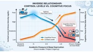 The modern university system often ignores the reality of human biology. Your circadian rhythm is an internal 24-hour clock that regulates alertness and sleepiness. When students stay up until dawn to finish a literature review, they aren’t just “tired”β€”they are experiencing a form of social jetlag. This misalignment increases levels of cortisol, the stress hormone, which has a direct negative impact on academic performance and emotional regulation. When your cortisol levels are permanently spiked, your ability to handle “Sunday Scaries” or acute academic procrastination vanishes. Instead of entering a “flow state” during exams, the brain stays in a survival mode that prioritizes immediate stressors over complex problem-solving. This is why sleep hygiene is not just a lifestyle choice; it is a fundamental pillar of cognitive function.